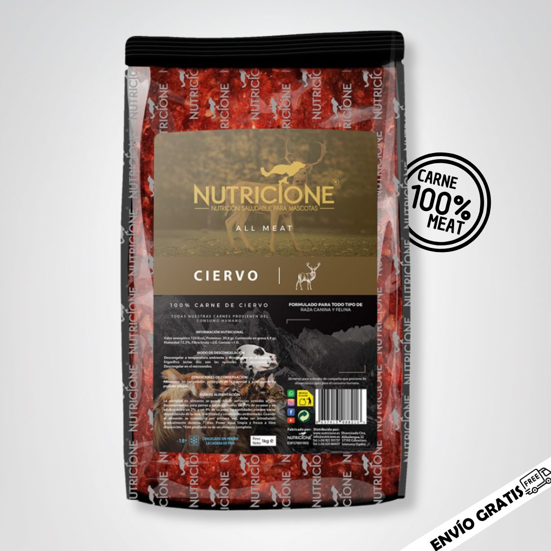 El Todo Carne BARF de Ciervo para perros y gatos de Nutricione es una excelente opción para quienes buscan una fuente de proteína natural para perros y gatos, novedosa y altamente digestible en la alimentación de sus mascotas.